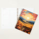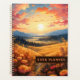 This planner features a vibrant illustration of a hilly field with a misty river and a beautiful mountain range in the distance. Orange wildflowers grow on the hill and the sky glows with colours of sorbet. The design is the same on the front and back covers. Personalise the front with the current year.