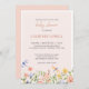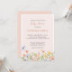 Watercolor wild flowers, leaves, dragonflies in soft watercolor palette of pink, blue yellow and green adorn this romantic and elegant Baby Shower invitation.