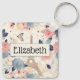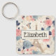 Flowers and Eiffel Tower Paris Travel Pattern Key Ring