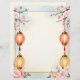 This Asian-inspired letterhead stationery has amber and honey-coloured lanterns down both sides, and pink cherry blossoms in the corners.  A gold frame has plenty of space for your correspondence, a newsletter, or an invitation.