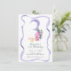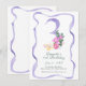 Birthday invitation card featuring watercolor illustration of number three with wild flowers and purple ribbon.