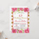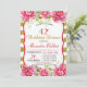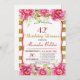 Stylish Birthday Party Invitation with white&gold striped background, surrounded by flowers. Red frame in the centre closing red&gold texts, makes it a perfect invitation complimenting an unforgettable evening spent with closest.