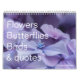 This 12 month calendar has cherry blossoms, tulips, poinsettias and other beautiful flowers, as well as some butterflies and birds, and inspirational quotes about nature: JANUARY The earth laughs in flowers (Ralph Waldo Emerson). FEBRUARY Faith is the bird that feels the light when the dawn is still dark (Rabindranath Tagore). MARCH Flowers and butterflies drift in colour, illuminating spring (unknown). APRIL Do something today that will encourage you to blossom (unknown). MAY Every flower is a soul blossoming in nature (Gerard De Nerval). JUNE In joy or sadness, flowers are our constant friends (Okakura Kakuzo). JULY Perhaps the butterfly is proof that you can go through a great deal of darkness and still become something beautiful (unknown). AUGUST Be as a bird perched on a frail branch that she feels bending beneath her, still she sings away all the same, knowing she has wings (Victor Hugo). SEPTEMBER A flower is a smile from heaven (unknown). OCTOBER My garden is my most beautiful masterpiece! (Claude Monet). NOVEMBER How does one become a butterfly? You have to want to learn to fly so much that you are willing to give up being a caterpillar (unknown). DECEMBER 'Tis my faith that every flower enjoys the air it breathes! (William Wordsworth).