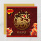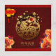 Design with traditional Chinese floral decoration + Chinese lanterns + golden Tiger paper-cut in central position with a branch of peach tree + "Happy New Year" in English and Chinese. Design on square flat card. You can easily change colour background by clicking the customise button. Matching greeting card, holiday postcard and red envelope.