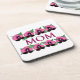 This design features a line of pink roses with green leaves on the top and bottom. The word "Mom" is printed in the middle of the flowers. This coaster comes in a set of 6 and can be customized with a different colored backround. A great gift for your mom on her special day..