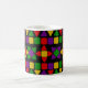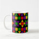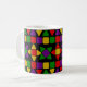 This mug has a Black History design of flowers and rows made from triangles and rectangles.