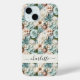 A dusty green and cream coloured flower pattern. Personalise and add your name. The name is written with a modern hand lettered style script with swashes.