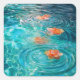 The image shows a serene scene of orange flowers floating on the surface of clear, turquoise water. Concentric ripples emanate from each flower, creating a dynamic pattern on the water's surface. The water reflects light, creating a shimmering effect with varying shades of blue and green. The overall mood is peaceful and tranquil, evoking a sense of calm and natural beauty.