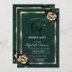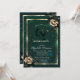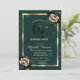A modern, chic and glamorous invitation with elegant roses on green background.