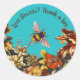 FLOWERS ,HONEY BEE IN BLUE SKY FLORAL BEEKEEPING CLASSIC ROUND STICKER