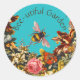 FLOWERS ,HONEY BEE IN BLUE SKY FLORAL BEEKEEPING CLASSIC ROUND STICKER