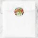 Lovely bouquet of flowers in red, orange and yellow arranged in a crystal vase sitting on a table by the window. Dreamy wooded scene through the window is the backdrop for this relaxing image. From an original watercolor by the artist Katherine Foltuz.