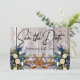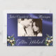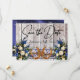 This design has a rustic elegance, keeping it simple theme. barnwood background with dusty blue ribbon, lace, knotted horseshoes and wildflower bouquets with placeholders for the date on the front. Placeholder for a photo of the couple is on the back of the card with names, and "Gettin' Hitched" script on matching ribbon background. Designed to coordinate with "Gettin' Hitched - Horseshoes, Ribbon & Lace" Collection. To change details, click «Personalize». To move the text or change the text size, font, or color click «Click to customize further»