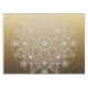 A unique & original pretty Boho style white Mandala featuring a pattern of leaves, flowers, circles and lines to produce an intricate & feminine design on a background of a beautiful gold look.