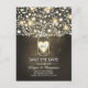 rustic country save the date postcard with mason jar full of yellow blooming flowers, handwritten leaves, cute tree branches and glowing love hearts.
