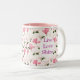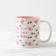 The mug features delicate white and pink floral patterns that wrap around an inspirational message in the center, reminding you to live each day with passion, love, and sincerity.