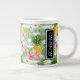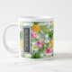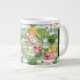 Flowers & Pineapple Teal Stripes | Add Your Name Large Coffee Mug
