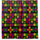 This shower curtain has a Black History design of flowers and rows made from triangles and rectangles.