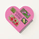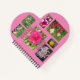 A Pink Heart shape Spiral Notebook, with Pictures of differen’t Flowers , and the Text “Special Notes “on the front and Back of it .
