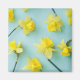 This amazing Getty Images photo features yellow daffodil flowers over a blue background.
