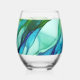 Flowing forms in green and blues stemless wine glass
