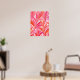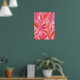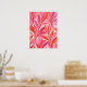 This abstract floral poster features a vibrant array of pink and orange hues, artistically blended to create an illusion of delicate petals and leaves. The design is dynamic, with sweeping lines and pointed leaf shapes that suggest movement and growth. The colour palette ranges from soft blushes to deep corals, creating a warm and inviting atmosphere. This piece would appeal to those who appreciate nature-inspired art with a modern twist, making it an ideal choice for contemporary living spaces, bedrooms, dorm rooms, or offices seeking a touch of organic elegance. Its vertical orientation and the lively yet harmonious composition will serve as a focal point in minimalist decor or complement bolder interior themes. The poster’s ability to add both colour and sophistication to a room makes it a versatile choice for various decorative purposes.