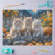 adorable Fluffy kittens sitting on a stone wall, pumpkins and Fall Flowers