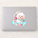 Fluffy Bichon Frisé with Assorted Flowers Custom Sticker, a heartwarming and personalised creation tailored for women and girls who have a special affection for the adorable Bichon Frisé dogs and the timeless beauty of assorted flowers. This delightful sticker showcases an endearing and fluffy Bichon Frisé with a charming blue ribbon around its neck, surrounded by a beautiful array of assorted flowers, including daisies, chrysanthemums, and primroses. The sticker is further adorned with an elegant blue ribbon where you can proudly display your cherished pet's name.