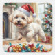 Fluffy Bichon Frise Dog Joyful Christmas Square Sticker