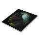 Dark enchanted looking woods with butterflies and hanging moss from the trees. A slight blue light through the trees backdrops this beautiful feline as it sits watching captivatingly through gold eyes.