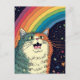Fluffy Cat in Space With Rainbow Postcard