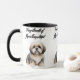 Fluffy Charm: Light Brown, Grey, and White Dog Mug