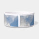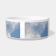 This awesome pet bowl features a photograph of a gathering of fluffy white clouds capturing the beauty and power of the weather. The wispy clouds are a mixture of white and pale grey shades captured against the backdrop of a beautiful pale blue sky.