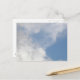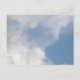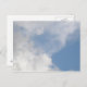 This postcard features a photograph of a gathering of fluffy white clouds capturing the beauty and power of the weather. The wispy clouds are a mixture of white and pale grey shades captured against the backdrop of a beautiful pale blue sky.