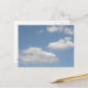 This postcard features a photograph of some fluffy white cumulus clouds floating leisurely across a beautiful blue sky.