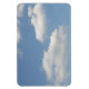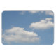 This awesome magnet .features a photograph of some fluffy white cumulus clouds floating leisurely across a beautiful blue sky.