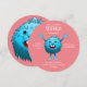 Fluffy and Cute Monster on round Birthday Party Invitation