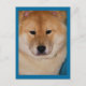 photo of a red fluffy dog face, this cute postcard is ready for you to write your personal message on the back right now.