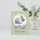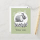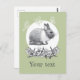 Fluffy hare with butterflies on green background postcard