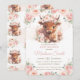Fluffy Highland Cow Pink Blush Floral Baby Shower Invitation