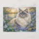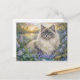 Fluffy Himalayan Cat In Purple Garden at Sunrise Postcard