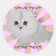 An adorable fluffy white kitten on a playful pink background. Original art © Lydia "PrairieGhost" Jacobs 2010