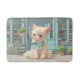Fluffy Kitten with Blue Bow at Pastry Shop Bath Mat