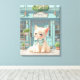 Fluffy Kitten with Blue Bow at Pastry Shop Canvas Print