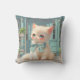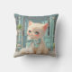Fluffy Kitten with Blue Bow at Pastry Shop Cushion