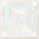 Fluffy Kitten with Blue Bow at Pastry Shop Glass Coaster