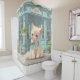 Fluffy Kitten with Blue Bow at Pastry Shop Shower Curtain
