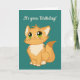 Fluffy Orange Cat Design Greeting Card with customisable background colour. Outside Text: It's your Birthday!. Inside text reads: "Hope it's the Cat's Meow! ". Or customise with your own text and font.