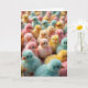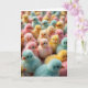 Designed with a close-up view of many fluffy baby birds crowded together, the scene forms a soft quilt of pastel yellows, mint greens, and rosy pinks 🌷. Several little birds in the front are in sharp focus, their downy feathers catching gentle light while the rest fade into a creamy blur behind them. Tiny dark eyes glance toward one another and outward, and a few lean close as if sharing a quiet secret, giving the group a friendly, affectionate feel 🐣. Small orange beaks and slender legs add warm contrast against the cool mint and pink tones scattered throughout the cluster. The background stays softly out of focus, making the foreground birds feel like they’re gathered right at the viewer’s side. Near the top center, the greeting “Happy Easter” appears in a light gray, rounded print style, with smaller text beneath in pale pink. A faint wash of pastel color frames the edges, and a couple of chicks near the lower right show brighter yellow feathers with crisp beak and eye details.