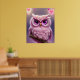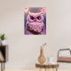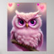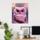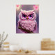 Fluffy Pink Owl with Hearts Poster